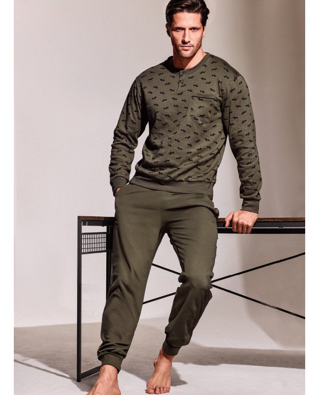 Pigiama manica lunga serafino con pantalone lungo polsi in interlock di cotone. Serie DERBY
