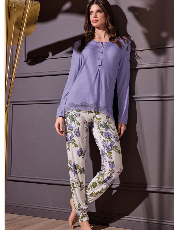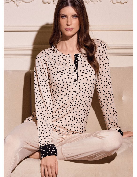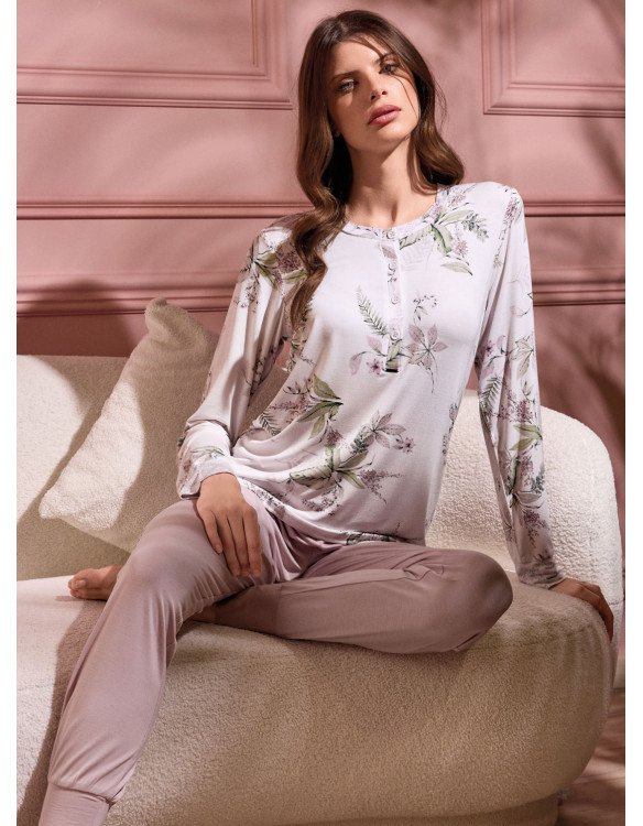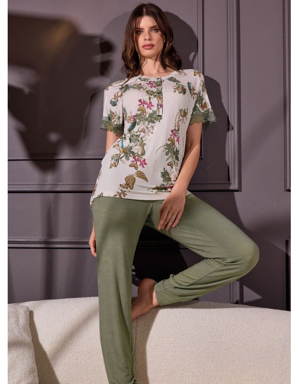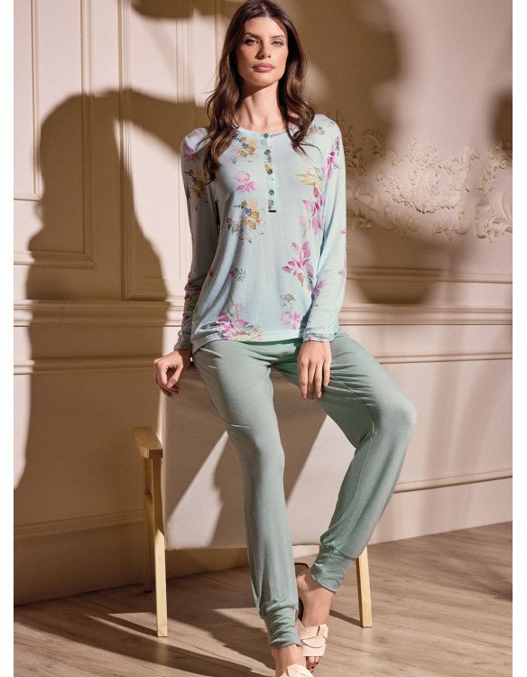 Pigiama donna "Lormar" serafino serie TAHITI mezza manica e pantalone lungo, in viscosa leggera