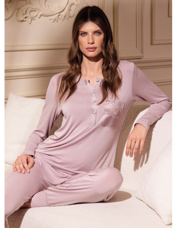 Pigiama donna serafino "Lormar" serie PASHMINA, in viscosa pesante