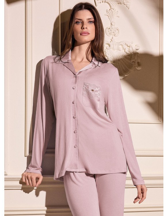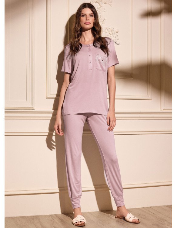 Pigiama donna "Lormar" serafino serie LIAISON mezza manica e pantalone lungo, in viscosa leggera