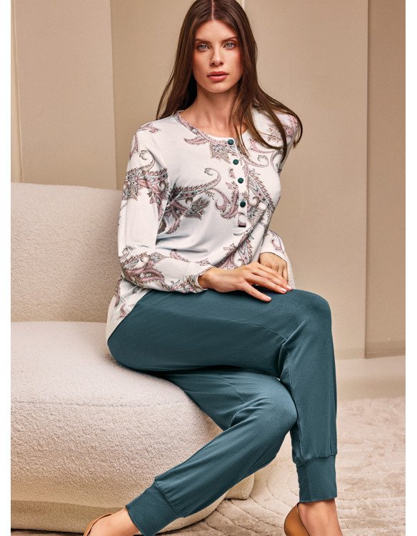 Pigiama donna serafino "Lormar" serie PASHMINA, in viscosa pesante